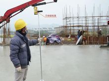 3、激光掃平儀控制砼澆注:在砼澆注之前將標高設定在柱筋上,并將準確的標高引到激光掃平儀控制系統,砼澆注人員刮平時將標高控制在比設計標高高出5—10mm范圍內,為下道激光整平機整平打好礎。