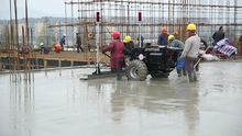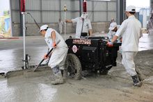 4、激光整平機整平:在專業技術人員的標高設定準確的情況下,有機械操作人員對通過激光掃平儀控制下的砼表面進行精準整平,整平機會自動以10次/秒的頻率對整平機進行校準控制,以保證整平面的精準度。