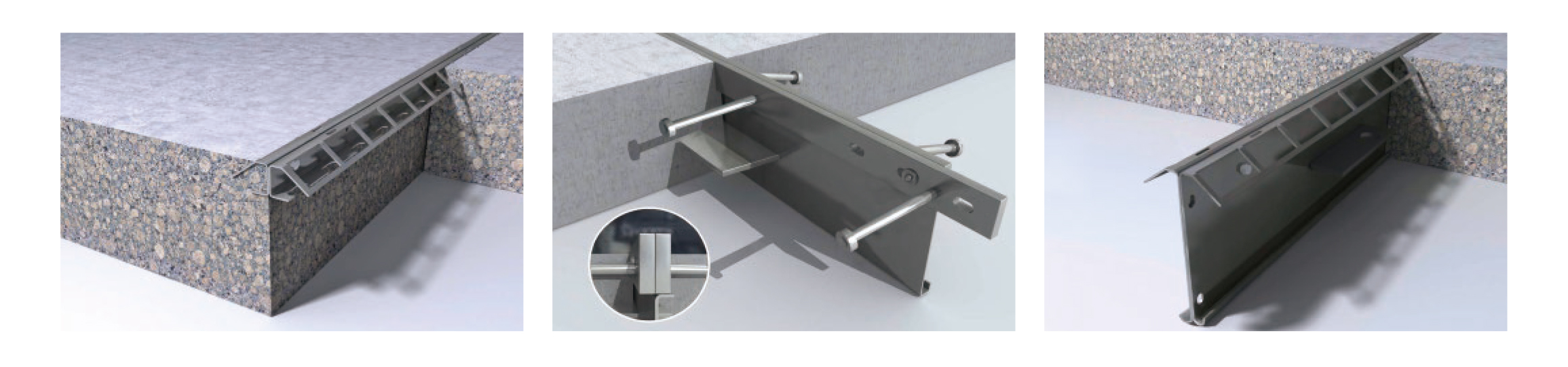 A型鎧裝縫由2mm的鍍鋅鋼板或不銹鋼板經(jīng)過激光切孔折彎成形,焊接傳力桿/板伸縮套,易斷塑料螺栓等組成